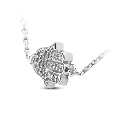 0.14CT TW Diamond Jewish Hamsa Pendant F-G Color VS Clarity 14K Gold Weight: 1.3 grams Supplied Stones: 28-0.005/RD Supplied Stone Weight: 0.14 CT. AVAILABLE IN ALL METAL AND DIAMOND SIZES