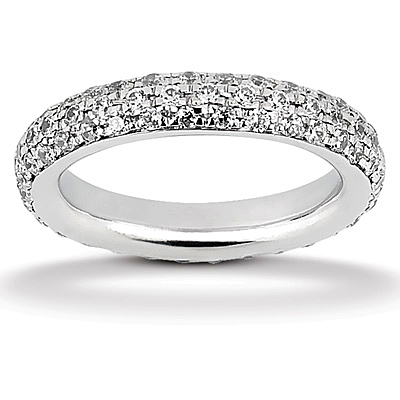 1.08CT 14K White Gold Brilliant Cut Eternity Wedding Band F-G Color VS Clarity 14K Gold Weight: 4.8 grams Supplied Stones: 108-0.01/RD Supplied Stone Weight: 1.08 CT. Top Width: 3 Bottom Width: 3 Top Height: 2.4 Bottom Height: 2.4 AVAILABLE IN ALL METAL,DIAMOND SIZE AND RING SIZE