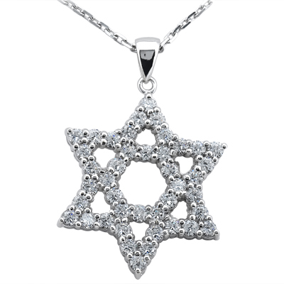 1.26CT TW Diamond Star Of David Pendant F-G Color VS Clarity 14K Gold Weight: 5.0 grams Supplied Stones: 42-0.03/RD Supplied Stone Weight: 1.26 CT. AVAILABLE IN ALL METAL AND DIAMOND SIZES