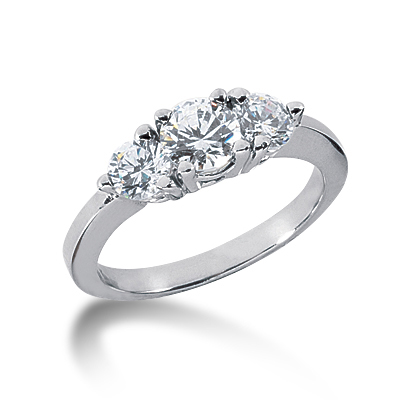 1.40ct 14K White Gold Three Stone Engagement F VS2 Diamond Ring