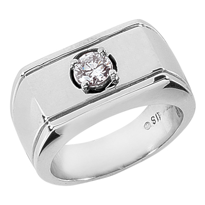 14K White Gold Men's Diamond Ring F-G Color VS Clarity