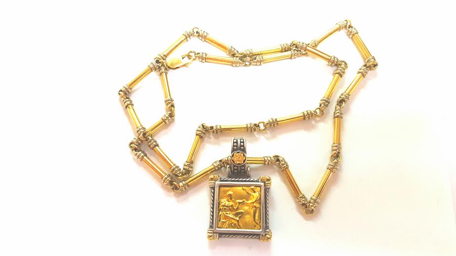 14k Yellow Gold And Silver Tagliamonte Jewelry Necklace Metal Type 14k Yellow Gold and Silver Metal Weight 47.95 gr Length 26 inch Pendant Size 1 Cubic Inch
