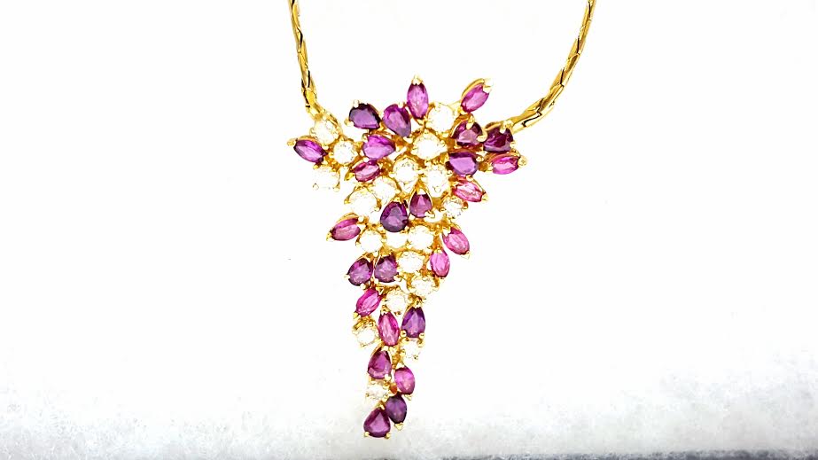 2.91ct Ruby & 1.50ct Diamonds 13.74 gram Yellow Gold Necklace