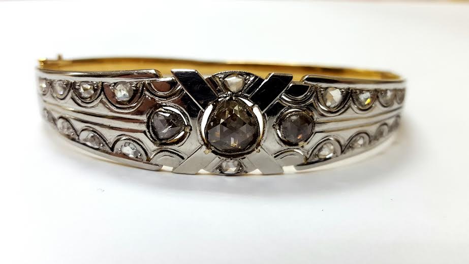 Antique Diamond and 18K Gold Bangle Bracelet,19th century, European